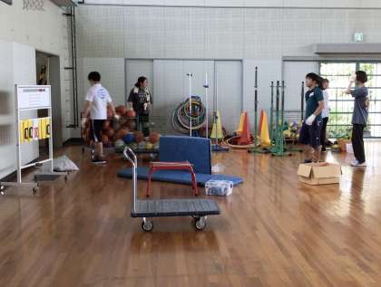 教員も職員作業を行いました。不要物の処分や備品の整理など、特別教室や体育館を中心に行いました。暑い中でしたが、作業後は見違えるようにすっきりしました。