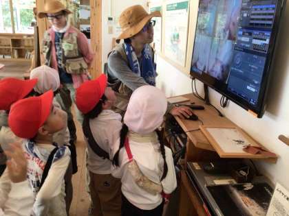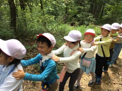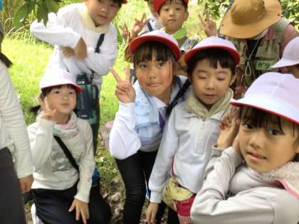 1年生は、先週トヨタの森に出かけました。子どもたちは、普段できない経験をたくさんして、終始大興奮でした。池で大きなカエルを見つたり、木を揺らして虫を落としたり、いろいろな種類のキノコを見つけたりしました。中には、オオスズメバチなどの危険な生物に出くわすこともありましたが、どのようにしたら安全に通ることができるのか、身をもって体験するよい機会となりました。