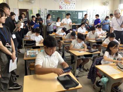13日(金)に5年3組で道徳の研究授業を行いました。教材の内容を聞いて、学習用タブレットで心の数直線を表したり、友達の考えと比べて自分の思いを発表したりしていました。下校後には全職員で協議会をもち、よりよい授業に向けて学びを深めました。