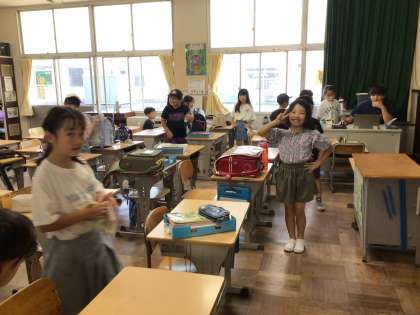 今週も9月とは思えない猛暑でした。長い距離を歩いて登校する児童は、学校に着くと真っ赤な顔をしていますが、エアコンの効いた教室に入るととても涼しそうです。朝の教室は、本を読んでいる子もいれば、友達とおしゃべりを楽しんでいる子、腕相撲をしたりしている子もいて、各々の過ごし方をしています。6年生はあいさつ運動でいろいろな教室をまわり、元気よくあいさつをしてくれています。