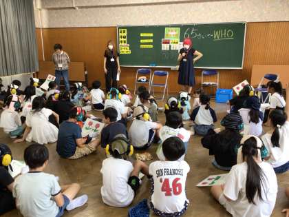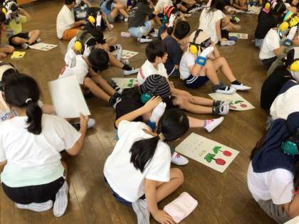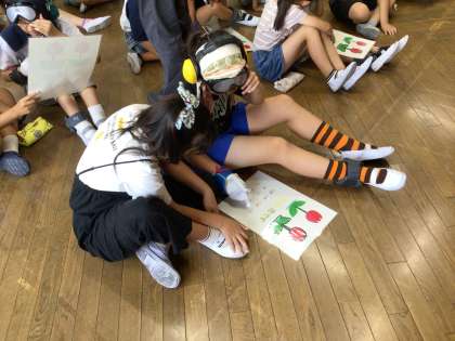 4年生が高齢者疑似体験学習を行いました。手首や足首におもりをつけたり、ゴーグルやイヤーマフをつけたりして、高齢者の方の体の動かしづらさや見えにくさ、聞こえにくさを体験しました。講師の方の話を真剣に聞いている様子を見て、たくさんのことを学び、いろいろなことを感じたことと思います。