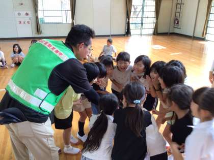 子どもたちは、もしも不審者に会ってしまったときにどうしたらよいかを、交通安全防犯課の方々から実践を交えながら学びました。また、防犯ブザーの点検と使い方の確認もしました。ぜひご家庭でも話題にしてみてください。
