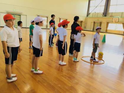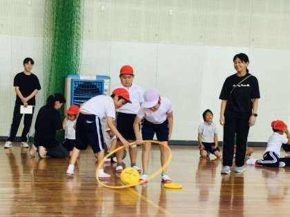 暑さも段々和らぎ、過ごしやすい季節となりました。オアシスの体育では、ボールやフープなどを使ってリレー遊びを行いました。ミニコーンとボールをアイスに見立てたリレーでは、友達がボールを落とさないよう「頑張れー!」と応援する声が飛び交っていました。