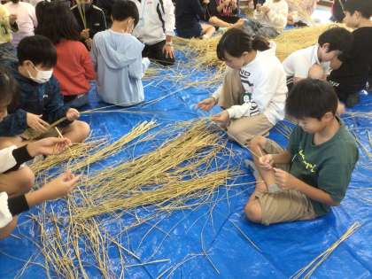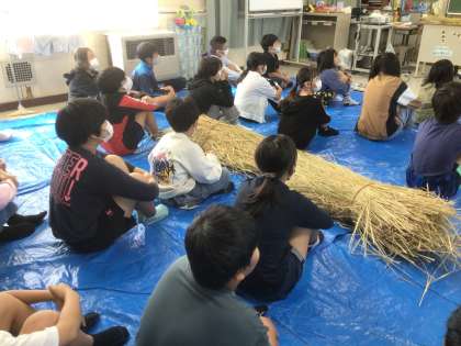 社会の学習「米づくりの盛んな地域」の中で、子どもたちが疑問に思っていたことの中から、わらについての学習を始めました。しめ縄がどうして作られたのか、どのような願いが込められているのかについてお話を聞きました。今回は、しめ縄を作るための仕分け作業を行いました。今後、しめ縄を作っていく予定です。