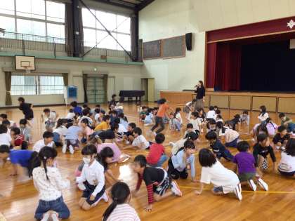 今日から後期が始まりました。1年生は、2時間目に体育館で学年集会をしました。前半は学習・生活のきまりや「いじめをしない」ことについて話をしました。真剣に話を聴く様子が見られ、後期への意気込みが感じられました。後半は、運動会の準備体操「元気っ子体操」を練習したり、レクレーションをしたりしました。学年みんなで進化じゃんけんをして楽しみました。