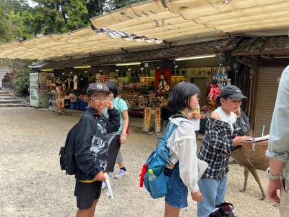 班別で奈良公園付近を散策しています