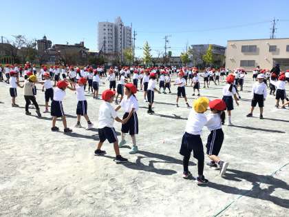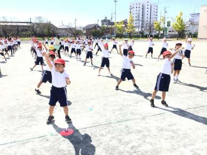 1、2年生は表現で「おいでん」を踊ります。昨年踊っている2年生を手本にしながら、楽しそうに踊りを覚えていました。とてもかわいらしいです!