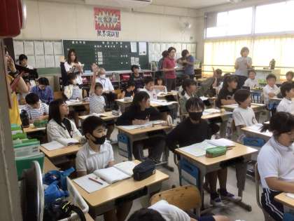 4年4組で算数の研究授業を行いました。長方形や正方形を組み合わせた複合的な図形を求める活動を行いました。予習でいろいろなパターンを考えてきているので、面積を求めることだけではなく、どのように面積を求めたのかを分かりやすく説明していました。下校後の協議会ではグループに分かれて活発な意見交換を行いました。