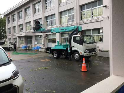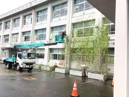 4年生がお世話をしていた緑のカーテンを業者に撤去してもらいました。大切に育ててくれたおかげでとても大きく成長し、立派に緑のカーテンの役目を果たしてくれました。