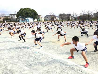 5、6年生のソーランの練習です。全体での練習とグループでのリーダーを中心とした教え合いの両方で、立ち方や構え方も様になってきています。