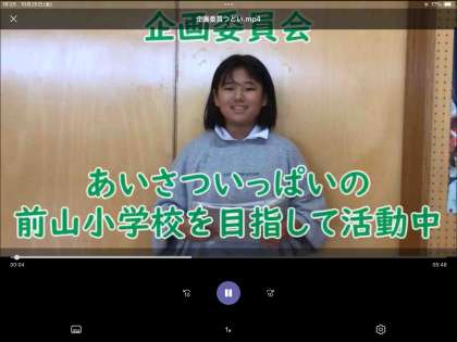 企画委員会作成の動画です。挨拶運動をしている子たちの前を素通りしていく子と、笑顔であいさつしていく子の様子を再現しています。