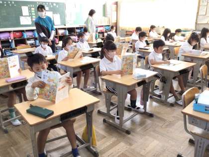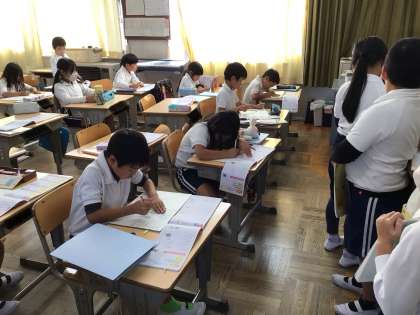 2年生は漢字の練習をしたり、先生に書いた字を確認してもらっているクラスや、国語の教科書を姿勢よく読んでいるクラスがありました。