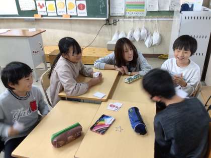 4年生の外国語活動の様子です。ピザのやり取りの授業に向けて、ピザ生地やグザイを前サポさんに作っていただきましたが、今回はタブレット上でパフェのやり取りをしていました。アイコンタクトやリアクションを意識して、生き生きと英語での会話を楽しんでいました。