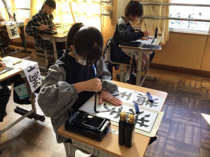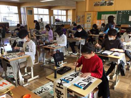 6年生が加藤矢舟先生を講師にお招きし、書き初め練習を行いました。筆を持って筆の運び方を丁寧に教えてくださっていました。どの子も真剣な表情で練習に取り組んでいました。