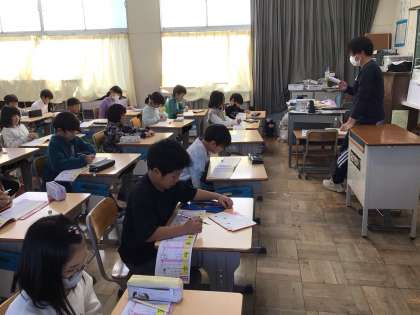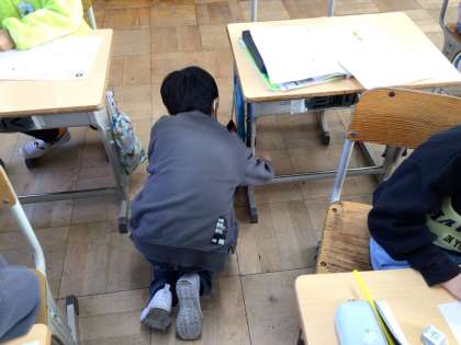 3年生の様子です。漢字ドリルで漢字の学習をしていました。別のクラスでは、掃除がない日でしたが、早く問題を解き終えた子が積極的にごみを拾っていました。