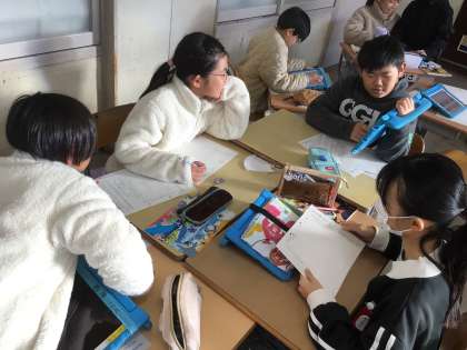国語の「和と洋新聞を作ろう」の学習では、4人程度のグループでくらしの中の和と洋を題材に新聞づくりをしています。