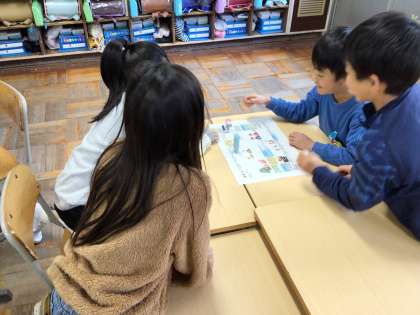 学活では、冬休みの思い出すごろくを楽しみました。冬休みを思い出しながら、とても盛り上がりました。充実した休みを過ごせたのだと思います。ご家族のみなさまにおきましては、九九カードのご協力など、ありがとうございました。今年度もあと3か月ほどとなりますが、引き続きよろしくお願いいたします。