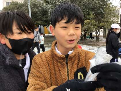 2025年の初雪でした。少ない積雪ですが、小さな雪だるまを作ったり、雪をなげあったりして、とても楽しそうな様子でした。また、きれいな雪の結晶や氷柱を見ることができ、とてもうれしそうでした。寒い日が続くので、風邪をひかないように手洗い・うがいをし、換気をよくして過ごしましょう。