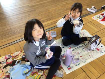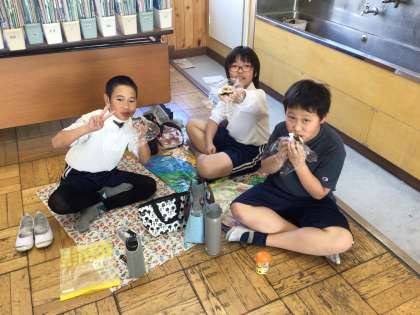 今日はフレンドリータイムがありました。それぞれの活動場所で、異学年の友達と一緒におにぎりを食べました。外の活動の子たちは、運動場にレジャーシートを敷いて、ピクニックのようでした。6年生が下学年の子たちが楽しめるような活動を計画し、当日も上手にリードしている様子が見られます。6年生にとってはリーダーシップを養う機会となり、下学年の児童にとっては、6年生の姿から優しさや思いやりを学ぶ有意義な活動となっています。保護者の皆様には、お忙しい中おにぎりを持たせていただきありがとうございました。