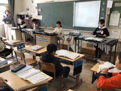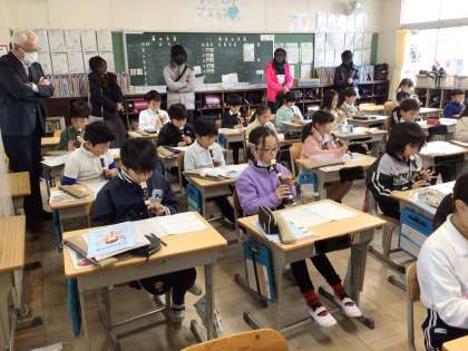 3年生は音楽の授業で合奏やリコーダー演奏をしていました。練習が始まった時から見守ってきた校長先生も、子どもたちの成長と息の合った演奏に目を細めてみえました。算数の授業も一生懸命取り組んでいました。