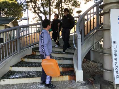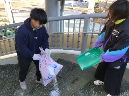 6日(木)にかけて、今季一番の非常に強い寒気が流れ込み、東海地方でも雪の予報となっています。登校時に降雪はなくても、路面が凍結している恐れがあります。十分気をつけて登校してください。児童の下校後、特に凍結が心配な歩道橋に融雪剤を撒きました。保護者の皆様で学校公開日にお越しくださる方も、お気をつけてお越しください。