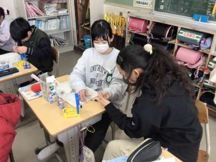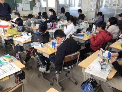 理科「電磁石の性質」の学習では、鉄芯に導線を巻き付ける準備を行いました。100回巻きのコイルを作ることに苦戦しましたが、楽しそうに学習の準備を行っていました。電流を流したらどうなるのか今からワクワクしている子どももいました。