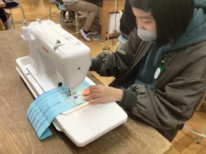 6年生の調理実習で使えるように、一生懸命丁寧に縫っています。出来上がったら、家に持ち帰るのでぜひご覧ください。