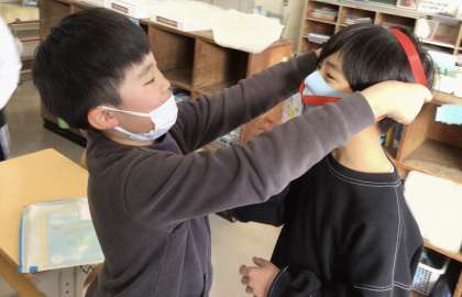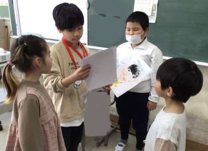 2、3枚目は、6年生が送る会の招待状を受け取る様子です。1〜5年生は、「喜んでくれるといいな」とつぶやきながら、心を込めて似顔絵やメダルを準備しました。プレゼントをもらった6年生はとても嬉しそうに眺め、明日の送る会を楽しみにしていました。