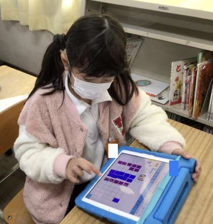算数科で「大きさくらべ」の学習をしました。場所取りゲームをして、楽しみながら大きさくらべをしました。