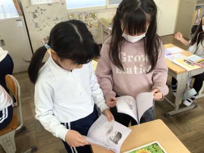 1.2枚目は、生活科『自分はっけん』で、友達やお家の方に聞いたり自分で思ったりした、頑張ったことやできたことを、絵本にまとめました。ランキングにしたり、絵を描いて頑張りを表した絵本を読み合い、みんなで1年の頑張りを認め合いました。ぜひお家でも見ていただき、1年の成長をお子さんに伝えてください。