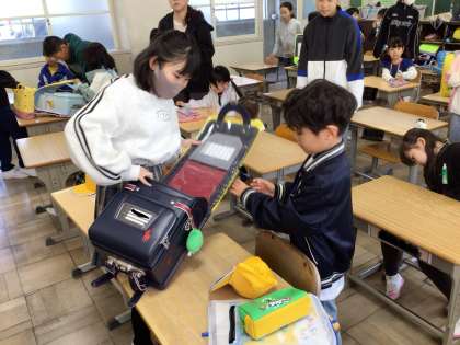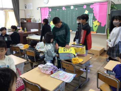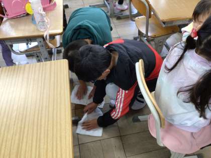6年生が、お茶をこぼしてしまった子のお茶を雑巾で拭いてくれました。