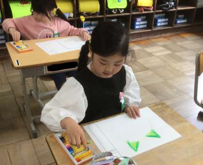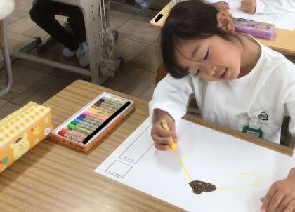 入学して一週間がたちました。学校での生活も徐々に慣れ、新しいことにたくさんチャレンジしています。図工では、自分の好きなものを画用紙に描きました。悩みつつも、楽しそうに、そして真剣に描く様子が見られました。描いた好きなものは、国語で紹介をします。子どもたちの発表が楽しみです。