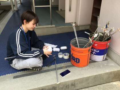 5年生の様子です。登校後にボランティアの子達が、昇降口の掃除をしてくれています。たくさんの児童が通る昇降口は、すぐに砂でいっぱいになってしまいます。こうやって自主的に掃除してくれているおかげで、いつもきれいな状態が保てています。外国語の授業では、今年から来てくださっているALTのYuu先生と楽しくゲームをしていました。体育館テラスでは、5年生の先生が、キャンプで使うトーチを作っていました。予定していたよりたくさんの子が希望してくれたので追加分です、と嬉しそうに作っていました。