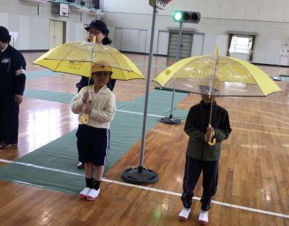 4月18日に交通安全教室を行い、安全な歩き方や傘の使い方を学びました。子どもたちはお話をよく聞いて、真剣に取り組むことができました。安全な登下校ができるように今回の学びを生かしていって欲しいです。