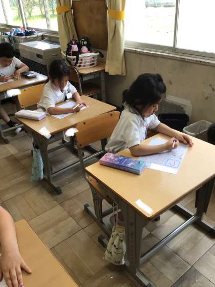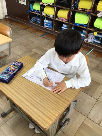 4月21日より、ひらがなの学習が始まりました。はじめは「つ」を書きました。姿勢や鉛筆の持ち方などに気をつけながら、一生懸命に書くことができました。ひらがなプリントの学校で書いていない部分は宿題になっています。ご家庭でも励ましの言葉をかけていただけると、励みになるかと思います。よろしくお願い致します。