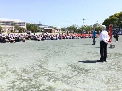 本日、地震を想定した避難訓練を行いました。担当教員から、30年以内に南海トラフ地震が起こる確率が80%で、それは給食でご飯が出る確率より高いので、それに備えてしっかり訓練を行ってほしいといういう話がありました。校長先生からは静かに早く避難できていて安心したこと、また前の人についていけば必ず助かるわけではないので、自分で確認し、命を守る行動を取ることが大切であるという話がありました。ご家庭でも防災について、また災害が起こってしまった場合の対応等について、話題にしていただければと思います。