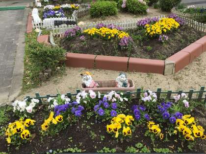 正門横の記念碑撤去の跡には紫陽花を、体育館と校舎の間にはラベンダーを新たに増やしました。花が咲くのが楽しみです。