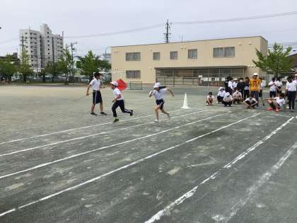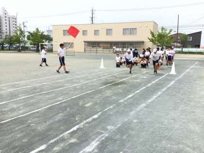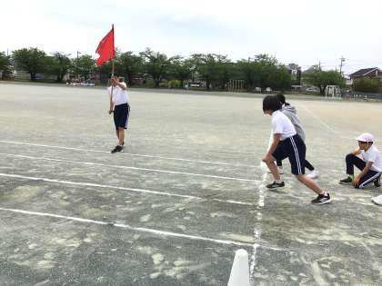 6年生が50mの記録を計っていました。スターターを任された児童が上手に仕切りながら、和やかな雰囲気で行っていました。満足のいく走りができた子はとても嬉しそうで、みんなからも称賛されていました。
