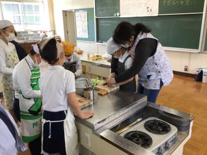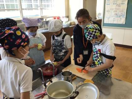 5年生の調理実習が始まりました。キャンプに向けて、カレーを作っていました。今回は、前小サポーターさんがたくさん来てくださり、子どもたちが安全に実習できるよう見守ってくださいました。皮のむき方や包丁の使い方など、上手にアドバイスしてくださり、ケガなく実習を終えることができました。今年度も前小サポーターの皆様の支援のおかげで子どもたちが安心、安全に教育活動を行うことができています。ありがとうございます。これからもたくさんのサポートのお願いをすることと思いますが、ご支援いただきますようお願いいたします。