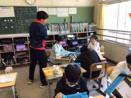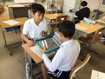 4年生が社会科の授業で自由進度学習を行っていました。自由進度学習とは、文部科学省が提唱する「個別最適な学び」と「協働的な学び」の実現を目指す学習方法の一つです。子どもたちの主体的な学習を促すことで、自分のペースで学習を進める子もいれば、設定した目標が同じ仲間と協働的な学びをしている子もいて、どの子も真剣にそして興味をもって学習に取り組んでいました。
