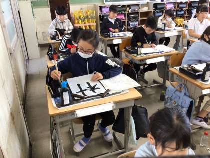 4年生が書写の授業を行っていました。今日は「林」という字を書いていました。止めやはらいなど、丁寧に書いている様子が見られました。