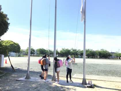 朝、国旗、市旗、校旗を掲揚してくれる子や、こいのぼりの掲示物に欠席人数の札をかけてくれる子など、それぞれの活動を行ってくれています。委員会や係の活動を、責任もって行ってくれている子がたくさんいるので、いろいろな活動がスムーズに行えています。いつもありがとう!