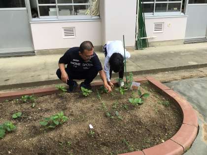 オアシスの子たちが、育てている野菜の畑の草取りや水やりをしていました。毎日愛情を込めてせわをしているおかげで、すくすく成長しています。一人一人が自分の育てたい野菜を育てているので、収穫がとても楽しみですね。