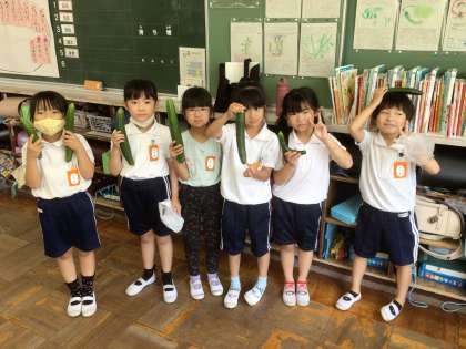 また、子どもたちが一生懸命育てている野菜も、野菜が大きくなり次第収穫して持ち帰っています。袋や肥料の用意など、ご協力ありがとうございます。今後も随時持ち帰ると思いますので、ぜひご家庭でおいしく食べていただけたらと思います。