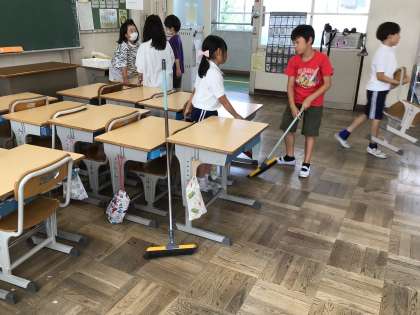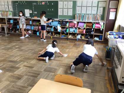 今週から、フレンドリー縦割り清掃が始まりました。学校をきれいにするために、高学年の指示を聞きながら一生懸命掃除に取り組んでいます。