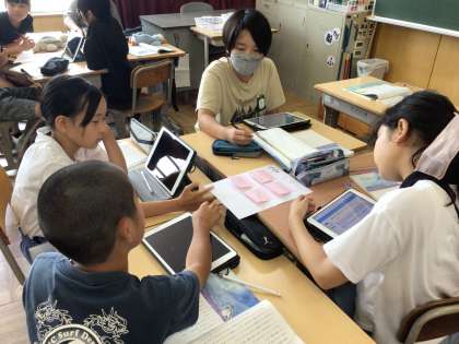 国語科の「風切るつばさ」の学習に入りました。初発の感想を伝え合った後、場面ごとの問い作りを行いました。班で場面を分担し、登場人物についてみんなで話し合って追求したいことを考えました。これから問いについて考えながら、人物同士の関係について話し合っていきます。
