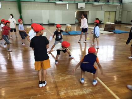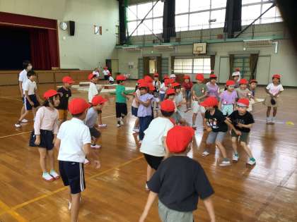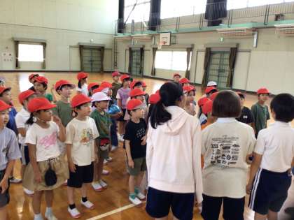 体育委員会と保健委員会の主催で、「暑さに負けず運動しよう」企画がありました。2年生は転がしドッジボールをしました。外が暑くて出られない日が続いていますが、体育館の涼しいところで運動している姿はとても楽しそうでした!