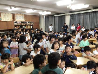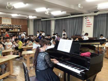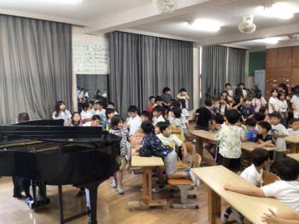 本日、前小タイムに心の相談員さんによる"サマーコンサート"が開催されました。会場には、たくさんの子どもたちが集まってくれました。グランドピアノで「カノン」「翼をください」「つばめ」の3曲が演奏されました。翼をくださいでは、子どもたちが合唱する場面があり、ジーンと心癒されました。聞いていた子に感想を聞いてみると、「すごく上手だった〜」と笑顔で答えてくれました。