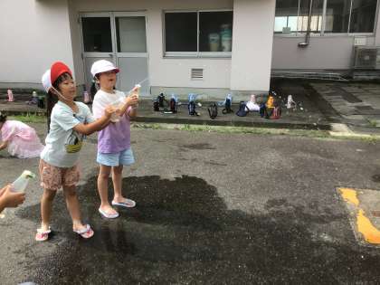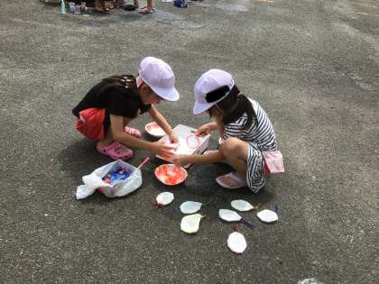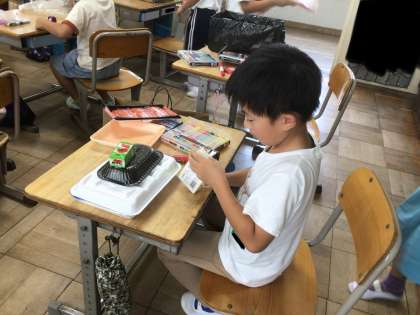 生活科「なつとなかよし」で、水遊びを行いました。水を使ってどんな遊びができるかを考え、形にしたもので遊んでみました。上手くいかなかったところは、2回目の水遊びのために友達にアドバイスをもらってレベルアップしました。2回目でより楽しく遊ぶことができるといいですね。たくさんの道具の準備ありがとうございました。
