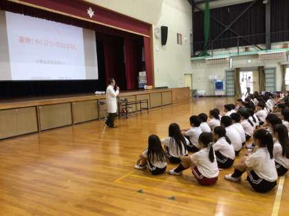 本日6時間目に、豊田調剤薬局スピカ店薬剤師の深津俊様に来ていただき、薬物についての話をしていただきました。子どもたちは、普段飲んでいる風邪薬や痛み止めの薬と、危険な薬物の違いを学びました。また、適量を飲まないと、危険な薬になることも改めて知ることができていました。実際に悪い薬物(フェンタニル)を乱用している人の様子や、街の雰囲気を見て驚いたり、絶対使いたくないと言っている子どもたちの姿がたくさん見られました。薬物乱用は「ダメ。ゼッタイ。」ということを正しく理解することができました。